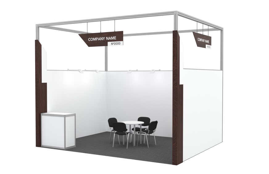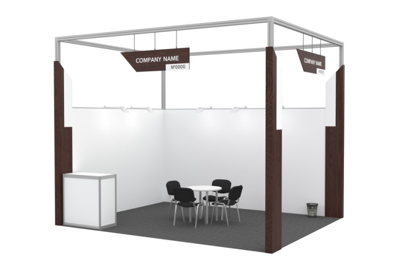 | Light column (3,6х1х0,25 m, filled with “milky” organic glass) with internal lighting and a logo (0,4х1 m), at the corners of the stand on the open sides | ✓ | ✓ | ✓ | ✓ | ✓ |